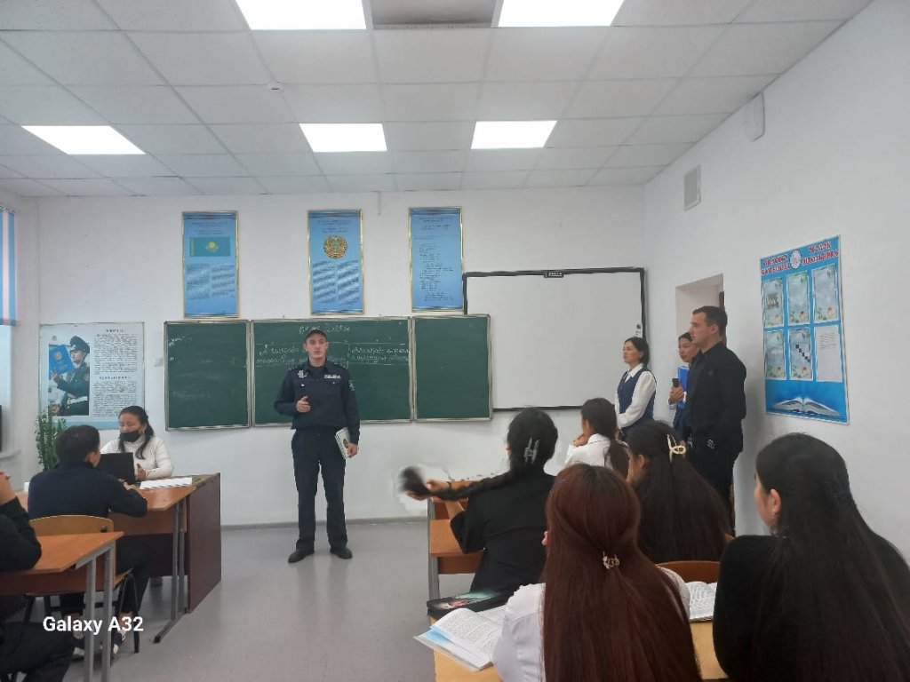 2025 жылғы 1 қазанда Жақсы ауданы ПБ-нің Кәмелетке толмағандар істері жөніндегі инспекторы, полиция лейтенанты Тимофеев В.Л 8–11 сынып оқушыларымен профилактикалық әңгіме және дәріс өткізді.